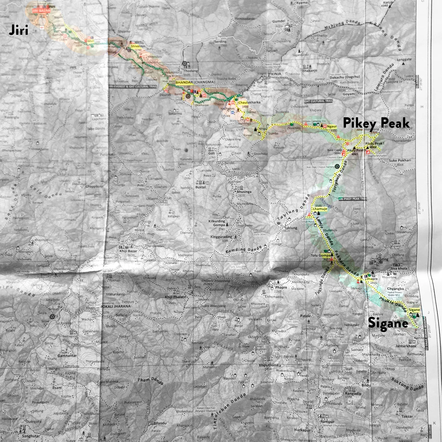 Map - Sigane to Jiri 4-day trek via Pikey Peak