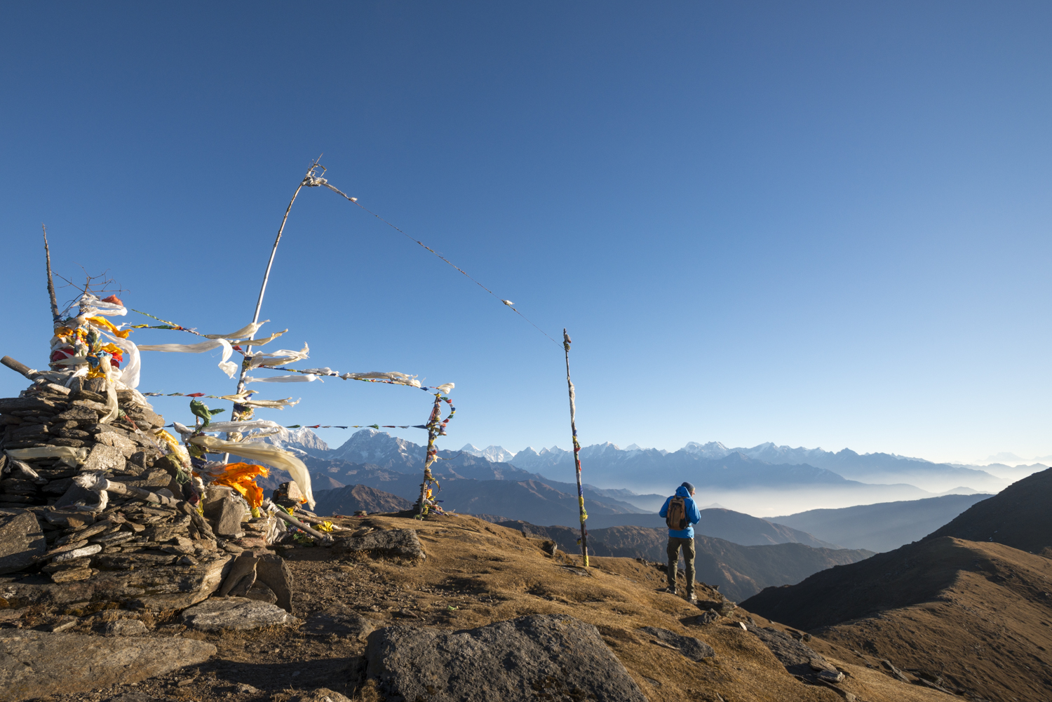 The view from Pikey Peak may be the best view in Nepal. That’s a bold statement indeed, but Edmund Hillary himself claimed it his favourite view of Everest and I’m inclined to agree with him. The advantage of being slightly further away from the big peaks is the views stretch further and encompass more. In fact on a clear day (which I was lucky to have) it’s possible to see Dhaulagiri (in the far west) all the way to Kanchenjunga, which borders India in the far east. And everything in-between. It is a truly breathtaking sight taking in countless giant peaks to the north and deep valleys dropping away into the clouds to the south.